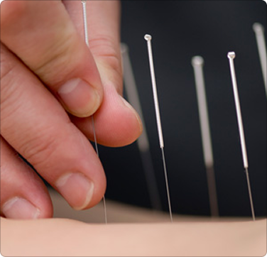 Thin stainless steel needles inserted at specific points to stimulate energy pathways and promote healing.